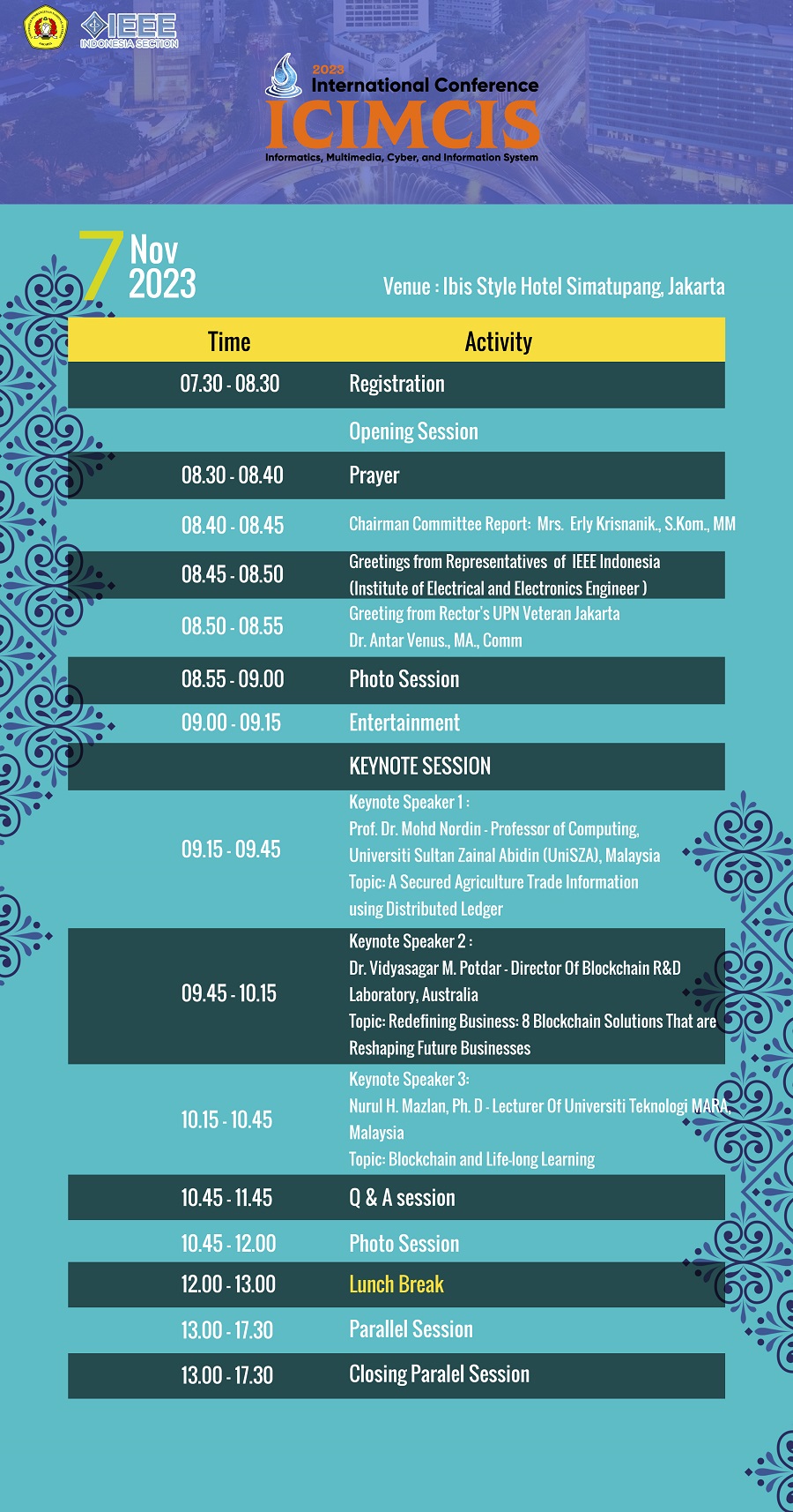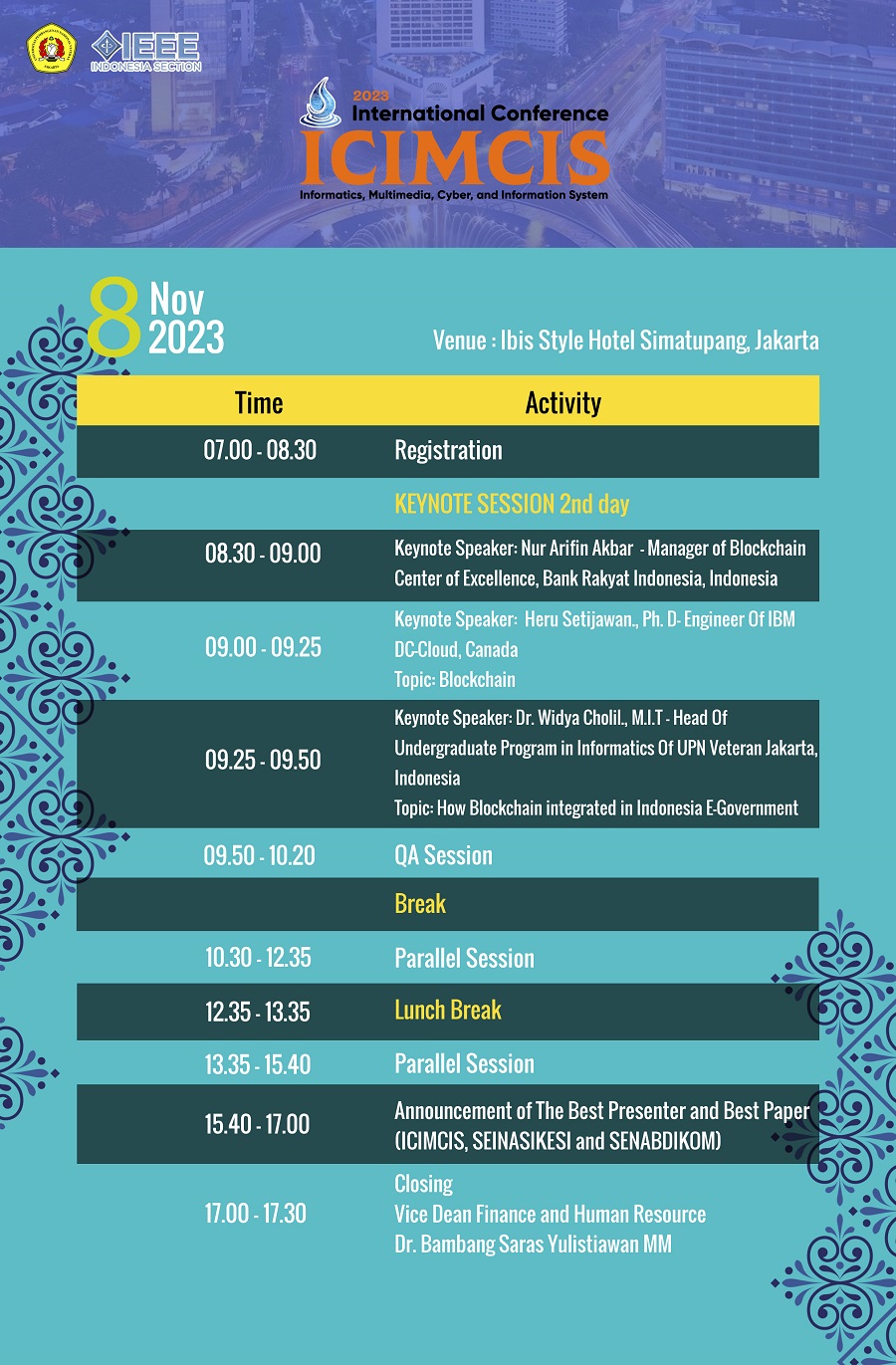 INTERNATIONAL CONFERENCE ON INFORMATICS, MULTIMEDIA, CYBER, AND INFORMATION SYSTEM (ICIMCIS)